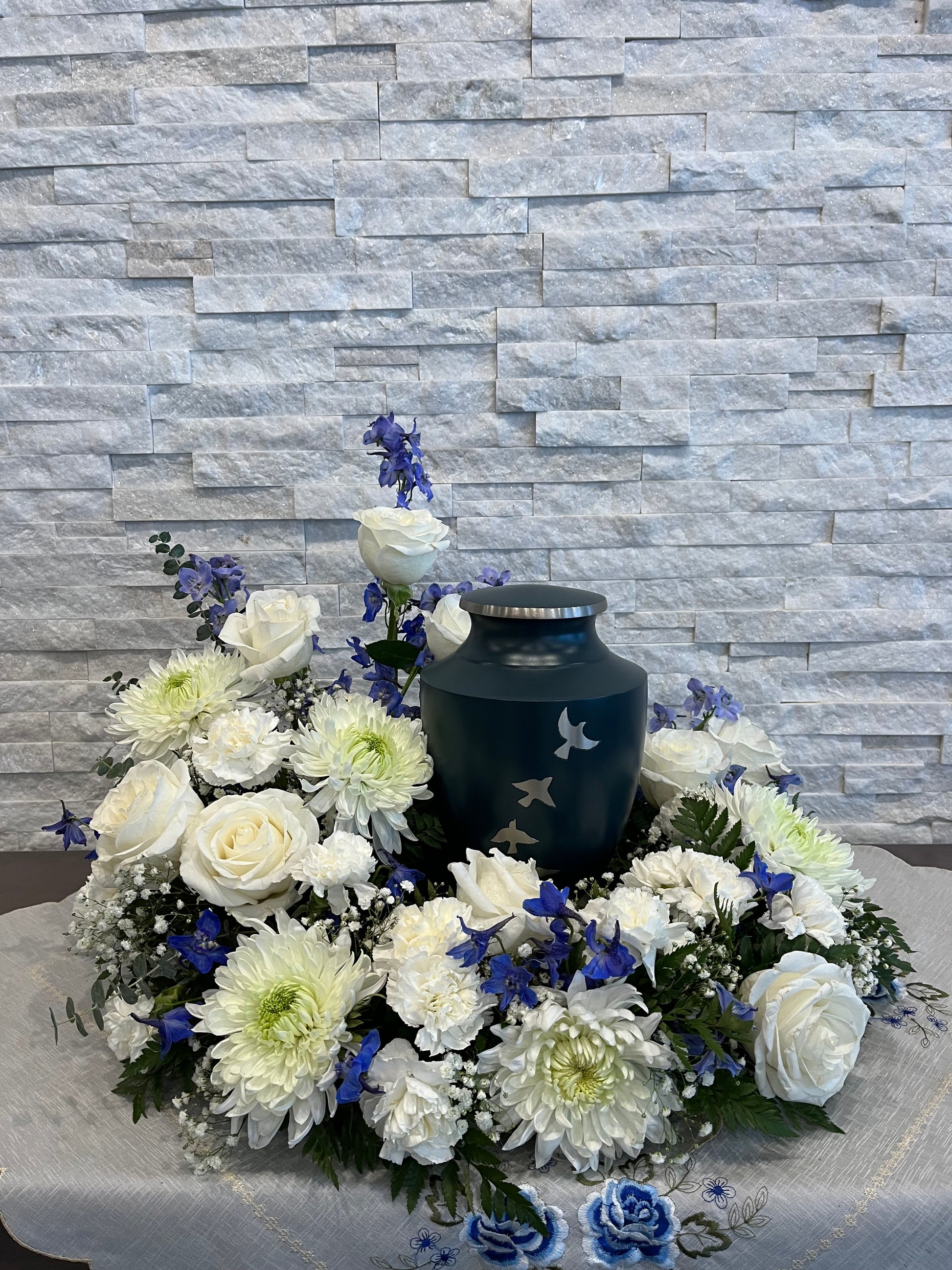Réduire la quantité de Arrangement d'urne bleu blanc