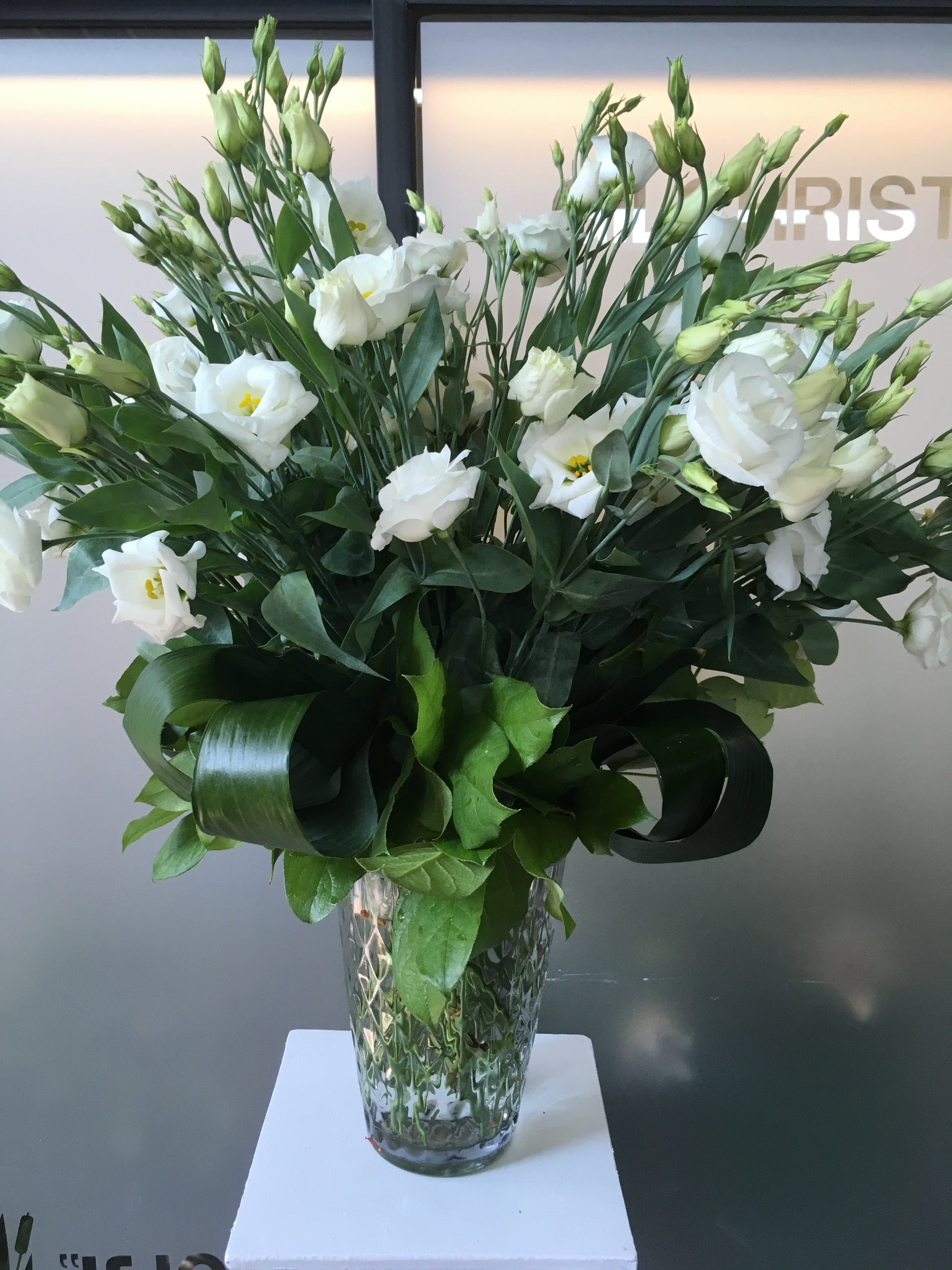 White Lisanthus vase